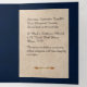 Fairy tale style wedding invitation done in a blue antique book looking tri fold. The outside front is done in a an old antique blue book cover look, with graphics of gold decorations. The inside is done in antique looking paper. The inside middle section has a custom photo slot ready for your picture. Personalise all the text fields for your special wedding announcement.