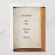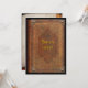 This greeting card looks like an old book on the front side and an open book page on the back. All text is customisable (on the cover page, too)