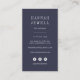 Elegant vertical business cards for antique stores, antiques dealers, furniture restorers or interior designers feature a vintage etched style rocking chair illustration in midnight blue, with your name and/or business name beneath. Personalise the reverse side with your contact information in white on midnight blue, including three social media icons and a template field for your social media handle.