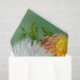 Every ardent gift wrapper will want a few sheets of this showy coral, gold, and white chrysanthemums catalogue cover of yesteryear tissue. This is especially timely for midsummer through autumn wrapping when mums are out in all their glory.