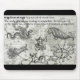 A design featuring an antique map and many creatures from the natural histories of the middle ages and renaissance.