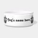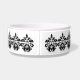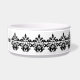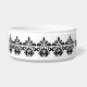 An elegant damask pattern in black and white on a dog food bowl. Add your dog's name to it.