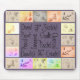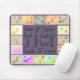 A unique mouse pad with a tile border, each tile containing an antique drawing of different body parts. Eyes, ears, hands, and feet are among the sketches. The interior is filled with words about drawing, sketching, and painting along with the tools every artist knows. Pen, pencil, chalk, ink, paint, and pastel are some of the words used in a fun font.
