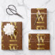 Antique Faux Leather & Gold Monogram Birthday Wrapping Paper Sheet