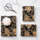 Antique Floral Pattern Orange on Black Wrapping Paper Sheet