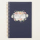 Start the new year in style and keep track of your appointments and key date with our chic floral planner. Personalised design features a rich midnight blue background with your name and the year on a watercolor floral badge with clusters of blush pink, peach and cream rose and peony flowers.