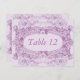 An antique-inspired frame is the focal point to frame the table information on this lovely lilac table card that is reminiscent of the Victorian-era. Double-sided design for convenience from any angle. Available in alternate colours with matching products.