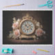 Elevate your crafts with the elegance of our decoupage paper featuring a vintage French table clock, delicately adorned with graceful pink roses. Infuse sophistication into your creations and capture the timeless beauty of bygone eras.