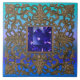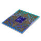 Ceramic tile with an image of antique gold filigree with a centre blue sapphire on a background of the beautiful blue hues of the male peacock. See the entire Gemstones & Medallions Tile collection in the HOME section.