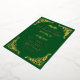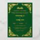 Impress your guests with this Islamic-style wedding invitation featuring an elegant gold foil ornate border and 'Bismillah' in Arabic calligraphy on a green emarald background. Simply add your event details on this easy-to-use template to make it a one-of-a-kind invitation. This invitation is fully customisable. All texts are editable you can personalise them according to your needs.