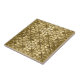 This striking ceramic tile features an antique gold metallic-look geometric pattern inspired by classic starburst motifs. The design blends faceted shapes with softly weathered gold tones, creating a rich, dimensional effect reminiscent of aged brass or gilded metalwork. Intricate, symmetrical star forms repeat across the tile in a seamless layout, giving it a refined, architectural feel. Perfect for adding a touch of vintage luxury to eclectic décor, historical-inspired spaces, or modern interiors that benefit from a warm metallic accent. Search ID1227 to see other metallic geometric designs in this series. Note: design adapted from generative content.