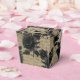 Favour boxes featuring a vintage gothic black roses with a golden antique typography background.
