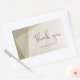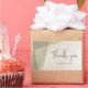 These simple, modern wedding thank you stickers feature an antique grey colour theme with calligraphic elements, asymmetric gold frame accents, and marble texture appearance - by katz_d_zynes