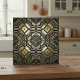 This richly detailed ceramic tile design features an intricate, faux bas-relief geometric motif inspired by antique metalwork. A striking mix of aged iron tones and warm antique gold gives the pattern a sophisticated, time-worn elegance, with raised contours that create beautiful depth and shadow. The repeating star and floral-inspired shapes bring a sense of symmetry and artistry, making this an eye-catching choice for collectors and décor lovers alike. Search ID1227 to see other metallic geometric designs in this series. Note: design adapted from generative content.