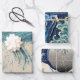Antique Japanese Blue Waves Ocean Print Wrapping Paper Sheet