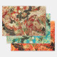 ANTIQUE JAPANESE FLOWERS Red Teal Green Floral Wrapping Paper Sheet