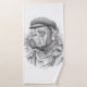 A noble English Bulldog Minister in a flat cap, portrayed as a majestic marble sculpture on a premium guest towel. This design brings a touch of British authority and ancient Greek aesthetics to your guest bath or kitchen. Detailed weathered stone effect for a timeless look.