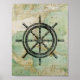 Antique Nautical Ships Wheel & Map Poster