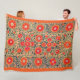 ANTIQUE ORANGE RED WHITE FLORAL UZBEK EMBROIDERY FLEECE BLANKET