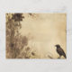 Antique Paper Black Bird and Flowers Halloween Holiday Postcard
