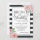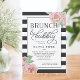 Chic and feminine in shades of blush pink and brushed off-black, our stylish bridal shower invitation features pink watercolor peonies and a bold striped background with "brunch and bubbly" and your bridal shower details in the centre.