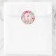 Modern vintage floral design features peony flowers and leaves in airy blush pink watercolor, with a single initial monogram in the centre in bold modern lettering.