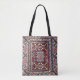 This lively design originates from an antique Persian bagface, circa 1870. It was hand woven in the Kurdistan District of northwest Iran. Bagfaces, also known as saddlebags, had two decorated pouches and the smaller ones were usually used on donkeys. The centre medallion has a somewhat geometric floral design in a soft ocean blue, deep rose pink, and light jade green. The larger rectangle has various shades of pinks, blues, browns and peach. The borders consist of all the wonderful colours found throughout the beautifully crafted rug. This saddlebag makes an artful bag for you, or a unique gift for a friend.