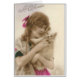 Beautiful young woman with her little white dog on an antique French real photo postcard for St. Catherine's Day. I have custom restored the image.