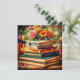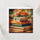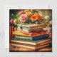 Pretty antique pile of vintage books covered by pretty orange and pink flowers. Beautiful ai art.