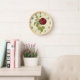 This beautiful clock design shows a vintage red rose graphic on a distressed, parchment coloured background that has white - cream polka dots. It's an elegant design that will look pretty in your home. Perfect for anyone who loves Victorian flowers. The clock numbers are black and in a retro style font.