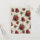 A vintage antique wallpaper design of burgundy red roses and green leaves on a tan suede leather pattern.