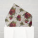 A vintage antique wallpaper design of burgundy red roses and green leaves on a tan suede leather pattern.