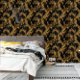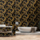 This elegant wallpaper features vintage rococo design in black and gold. Perfect for an accent wall in your home or office.