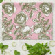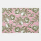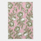An elegant kitchen towel with an antique floral pattern of vintage etched roses in white and faux golds on a pale pink background.