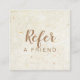 A chic rustic gold script referral card featuring a natural antique boho background with elegant hand-lettered script typography. Personalise with your contact information and special offer on the reverse. Designed by Thisisnotme©