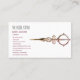 This seamstress business card features a regal style with vintage antique scissors and a banner promoting excellence and craftsmanship, with your initials as a monogram within the scissor handles. A style for someone who is a master at their craft. Wedding dress and tuxedo makers and alterations specialists would be well served by a card with a theme of regal elegance. Make a statement with this unique style. Add your own initials or simply delete them, and add your contact information to the back of the card. Colours of pink and dark grey complement each other nicely in the design. Subtle and lovely.