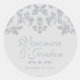 Sophisticated Silver Damask Wedding stickers. Rustic, vintage Silver damask pattern with a solid Silver background, these Vintage Silver Wedding stickers are perfect for your dream wedding with their sophistication and beauty. Designed Metro-Events.com, coordinating wedding decor and supplies are available in MetroEvents shop on Zazzle within our Vintage Damask wedding collection.