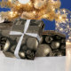Christmas Decoration Antique Silver Grey Baubles Photography Elegant Christmas Gift Wrapping Paper with faux ribbon and custom text "We Wish You A Merry Christmas! With Love, The Williams Family", you can change or delete the text
