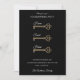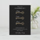 Make a sophisticated statement with this modern black and gold housewarming invitation. The striking design features a bold black background accented by three vertical antique skeleton keys that spell out "Home Sweet Home" in elegant script. This invitation is perfect for a chic evening affair or a celebration with a "Keys to the City" or vintage theme. Easily customize the date, time, new address, and host names (The Williams Family example). It's an unforgettable way to invite guests to your new residence.