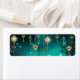 Gold, antique keys with gears and dials hang on gold chains on luminous green background.