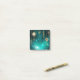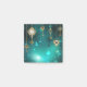 Gold, antique keys with gears and dials hang on gold chains on luminous green background.