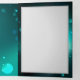 Gold, antique keys with gears and dials hang on gold chains on luminous green background.