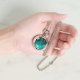 Gold, antique keys with gears and dials hang on gold chains on luminous green background.