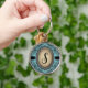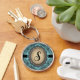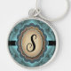 Personalise this Girly "One of a Kind" Turquoise Lace and Black Monogram Keychain! It Features Elegant Antique Turquoise Lace and a Tan Decorative Oval on a Blended Turquoise and Black Background!