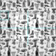 antique victorian animals black white toile women fabric