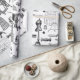 antique victorian sewing machine black white toile wrapping paper