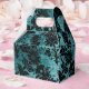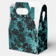 Vintage floral damask pattern favour box in hues of turquoise - teal and black.