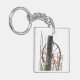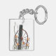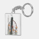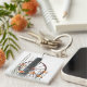 Antique wagon wheel hanging on a fence post with flowers. Image is on both sides of keychain. This also matches my wedding invitations and would make a great Thank You gift.