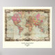 Antique World Map by John Colton, circa 1854 Poster