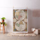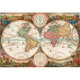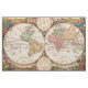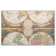 Antique world map from the 1700s with hemispheres in vintage colours and painting vignettes border.